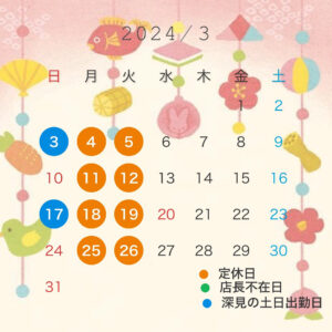 3月の予定のお知らせです?♂️ 今月も皆さまのご来店を心よりお待ちしております☺️✨・・・